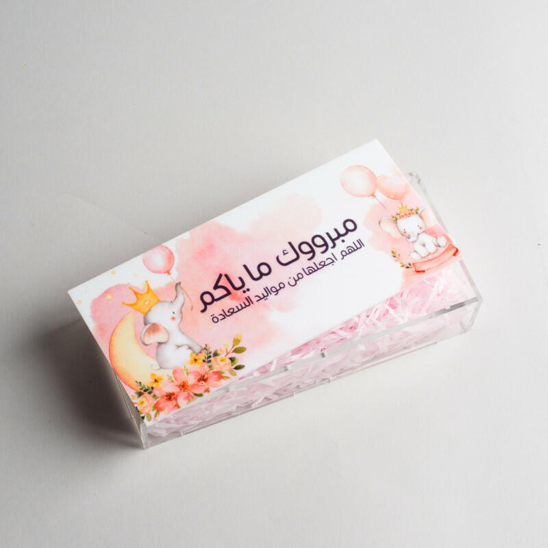 Printed acrylic lid that can be customized for the occasion, adding a unique and classy touch.