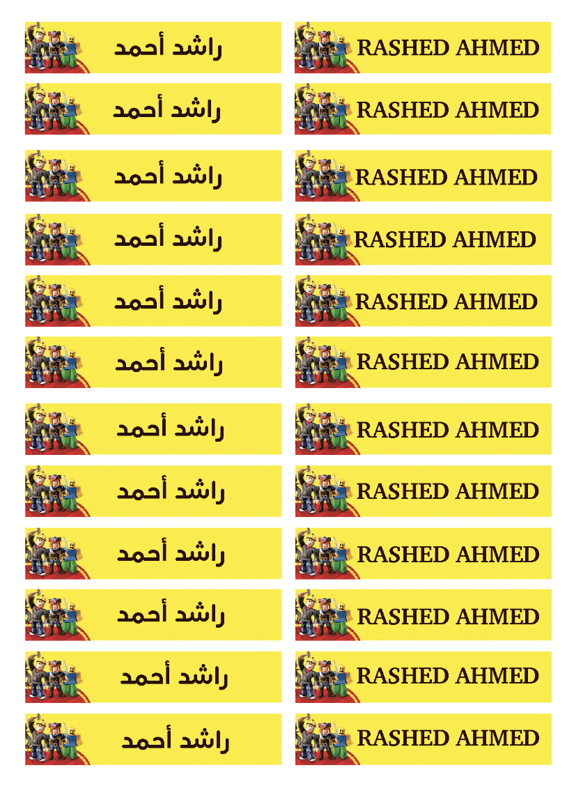 • Name printed in Arabic and English