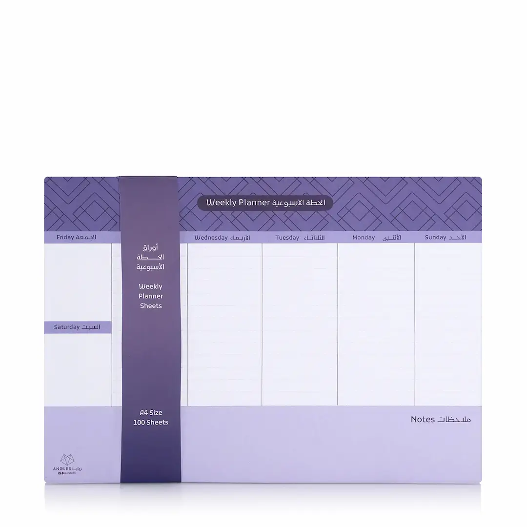 HomeWeekly Planner BlueWeekly Planner BlueDescriptionWeekly Planner Sheets Size 21 x 29.7 cm (A4 size) / 100 sheets أوراق الخطة الاسبوعية بقياس ٢١ في ٢٩.٧ سم عدد ١٠٠ ورقةMake it as giftAdd Gift wrappingAdd Gift cardAdd Gift bag