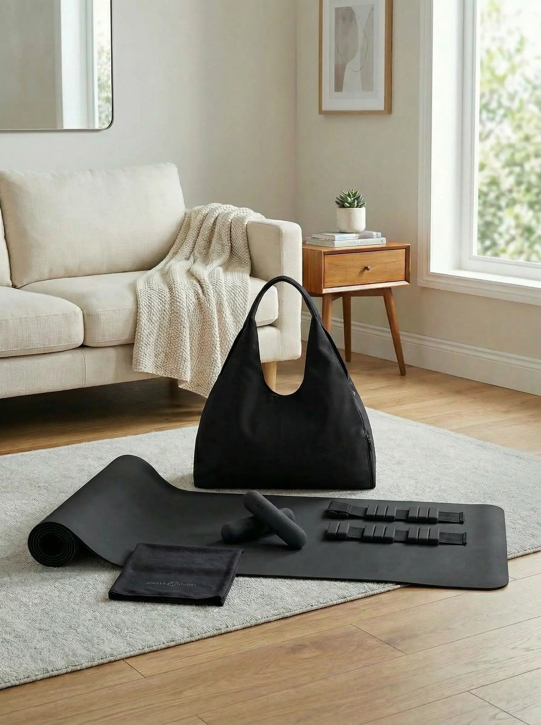 • شنطة نادي بتصميم عملي وأنيق مع إمكانية تثبيت الحصيرة من الأعلى
